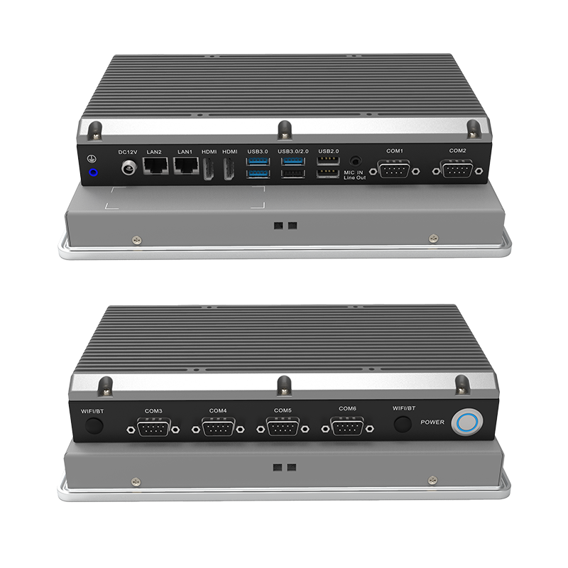 低功耗:英特爾® 賽揚® J6412 板載處理器,TDP 10W外觀設計:鋁合金一體成型,工藝精細,科技時尚穩(wěn)定可靠:純工業(yè)無風扇設計,大面積鋁鰭散熱,箱體材質(zhì)可抗接觸式6Kv強電磁干擾;液晶屏接觸處加強型密封膠圈設計,面板防水防撞擊人機界面友好:純屏10點工規(guī)電容觸控,操作更便利接口豐富:2*LAN(Intel),6*COM,3*USB3.0,3*USB2.0,2*HDMI,1*M.2(KEY-M,2280,支持PCIE x2信號 NVME SDD),1*Mini PCIE(全高,PCIE+USB信號,支持WIFI/BT)